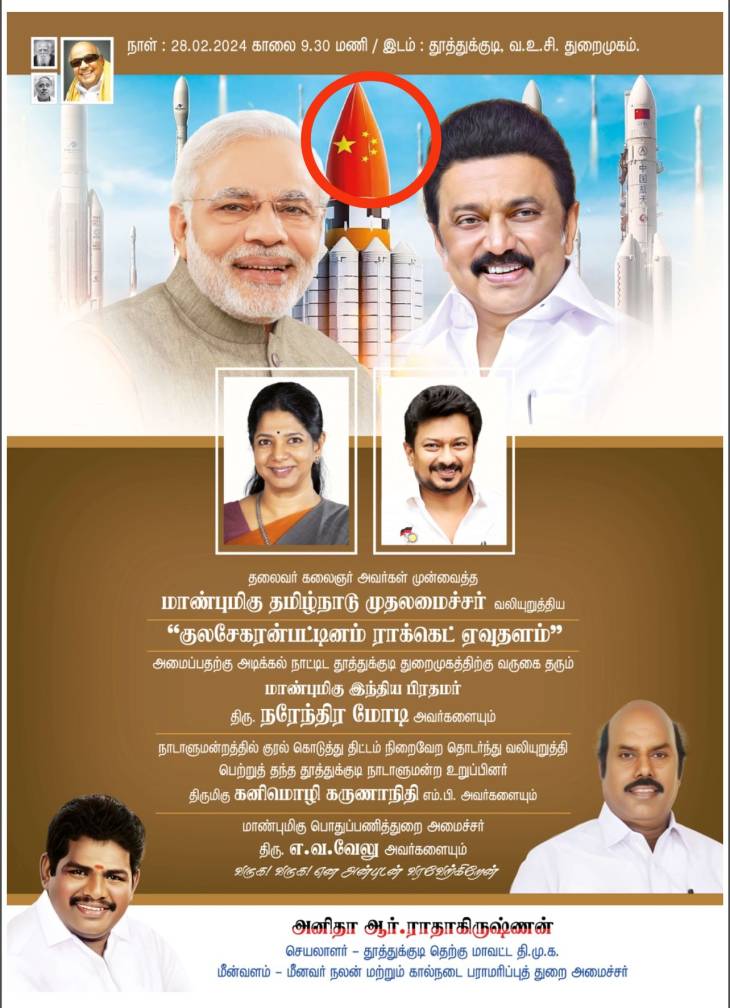 ஊழலில் கொடிகட்டிப் பறக்கும் கட்சியான திமுக, குலசேகரப்பட்டினத்தில் இஸ்ரோவின் இரண்டாவது ஏவுதளம் குறித்த அறிவிப்பு வெளியானதில் இருந்தே தங்களின் ஸ்டிக்கர்களை ஒட்டுவதில் தீவிரம் காட்டி வருகிறது.