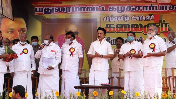 தமிழகத்தில் முதல் முறையாக பொது இடத்தில் அமைந்த திமுக தலைவர் கலைஞர் கருணாநிதியின் சிலை மதுரை சிம்மக்கல் பகுதியில் அமைக்கப்பட்டு, அதனை திறந்து வைத்துள்ள திமுக தலைவர் முக ஸ்டாலின், அதற்கு காரணமாக இருந்த மாவட்ட கழக செயலாளர்கள், வழக்கறிஞர் அணியினருக்கு தமது பாராட்டை சிலை திறப்பு விழாவில் தெரிவித்து உள்ளதோடு அவர்களை அழைத்தும் பாராட்டி உள்ளார்.