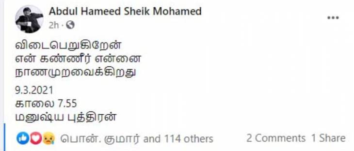 அவர் இன்று 9.3.2021 காலை 7.55 மணிக்கு,