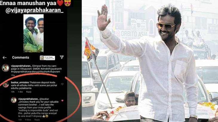 இந்த நிலையில் விஜயபிரபாகரன் சமீபத்தில் தனது இன்ஸ்டாவில் பதிவு செய்த ஒரு பதிவுக்கு நெட்டிசன் ஒருவர் ’ஒரு தொகுதியில் கூட டெபாசிட் வாங்கவில்லை எதற்கு இந்த தேவையில்லாத சீன், போய் பிச்சையெடுத்து பிழைக்கலாமே’ என்று பதிவு செய்திருந்தார்.