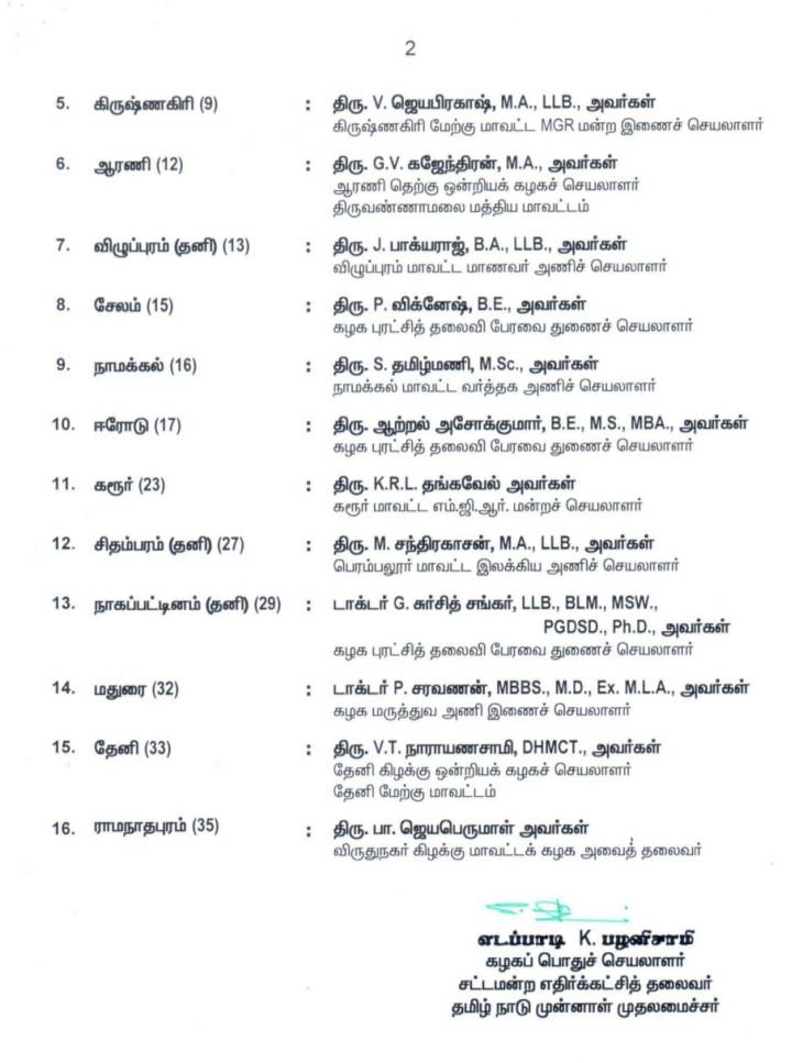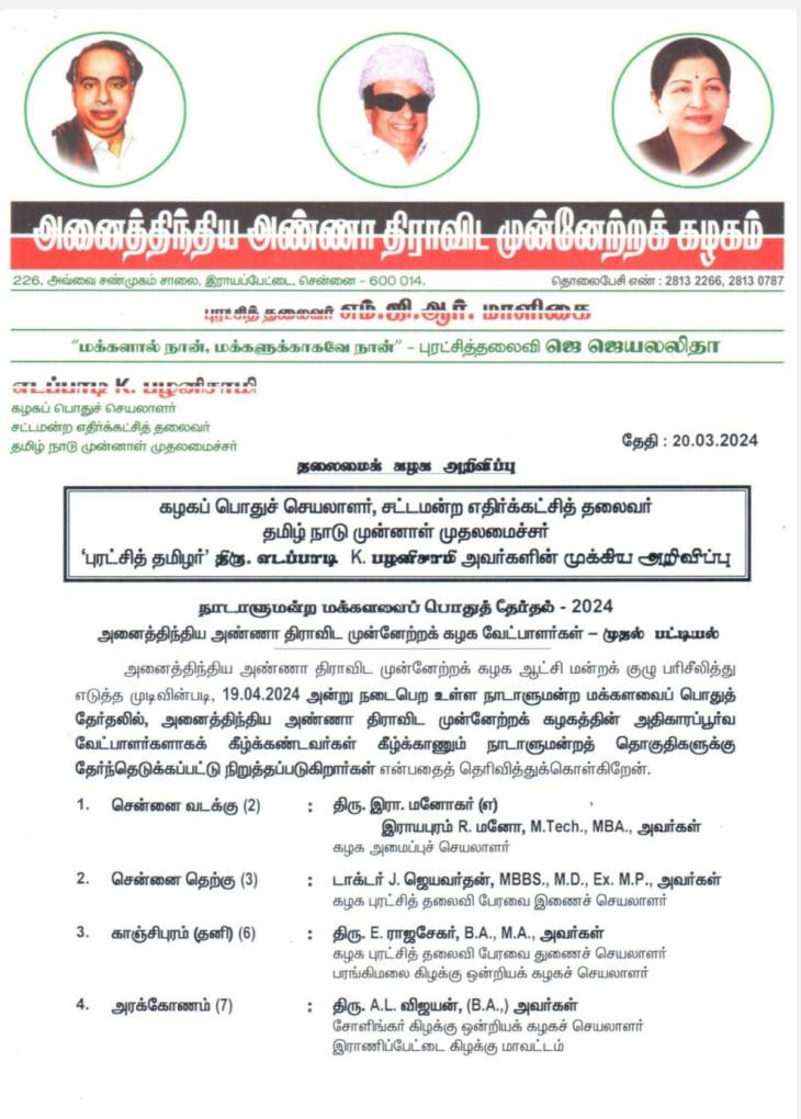 அதன்படி, அதிமுகவின் முதற்கட்ட வேட்பாளர் பட்டியல்