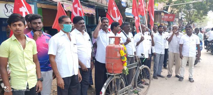தூத்துக்குடியில் சமையல் கேஸ் சிலிண்டர் விலை உயர்வைக் கண்டித்து சிபிஎம் ஆர்ப்பாட்டம்