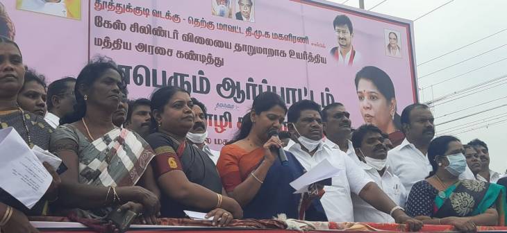 சிலிண்டர் விலை உயர்வு : கனிமொழி தலைமையில் தூத்துக்குடியில் ஆர்ப்பாட்டம்!