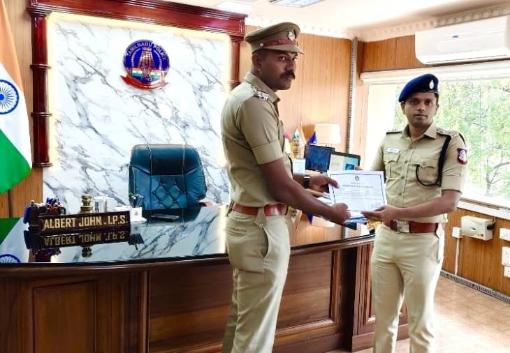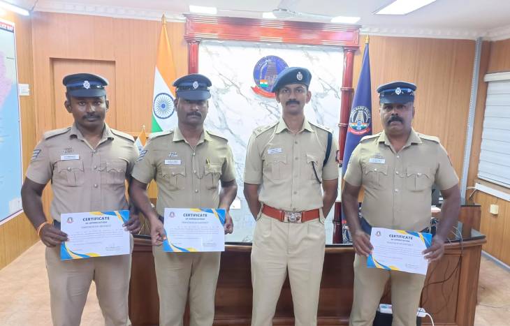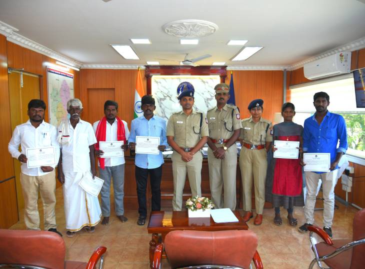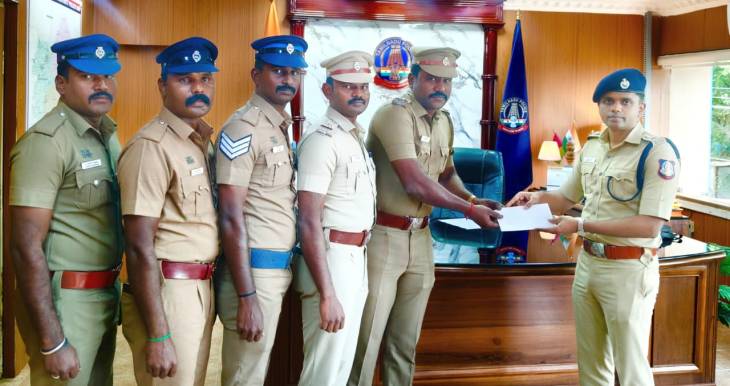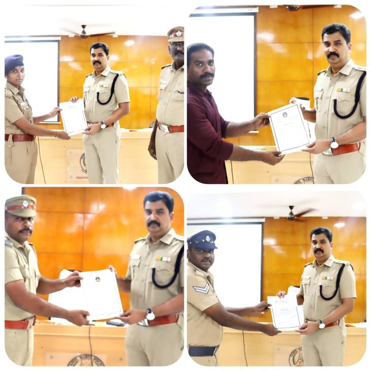சிறப்பாக பணியாற்றிய காவலா்களுக்கு வெகுமதி வழங்கி பாராட்டு
