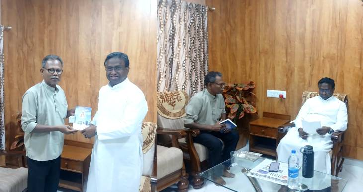 ஆட்சியர் செந்தில் ராஜை மத்திய கூட்டுறவு வங்கி தலைவர் சுதாகர் அதிகாரிகளுடன் சென்று சந்திப்பு