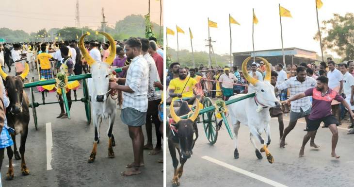 முத்தையாபுரம் மாவீரன் ஊமைத்துரை தொண்டர் படை சார்பில் மாட்டு வண்டி பந்தயம்
