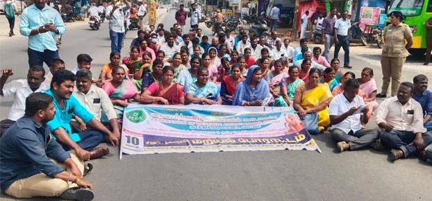 தூத்துக்குடியில் மத்திய அரசைக் கண்டித்து தொழிற்சங்கங்கள் சார்பில் மறியல்