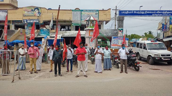 விளாத்திகுளத்தில் மார்க்சிஸ்ட் கம்யூனிஸ்டு கட்சியினர் ஆர்ப்பாட்டத்தில் ஈடுபட்டனர்.