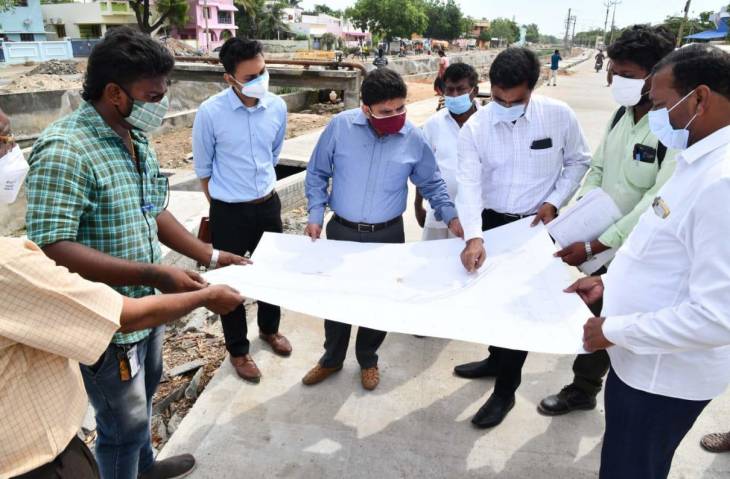 தூத்துக்குடி மாநகராட்சி திருச்செந்தூர் ரவுண்டானா அருகில் ரூ.83.87 கோடி மதிப்பில் நடைபெற்று வரும் வெள்ளநீர் தடுப்பு கால்வாய் பணிகள் மற்றும் ஸ்மார்ட் சிட்டி திட்டத்தில் நடைபெற்று வரும் என்.எச்.45 மீளவிட்டான் பகுதியில் ரூ.69.66 கோடி மதிப்பீட்டில் வெள்ள நீர் வடிகால் அமைக்கும் பணிகள், 3ம் மைல் பக்கில் ஓடை பகுதியில் ரூ.78.88 கோடி மதிப்பீட்டில் மேம்பாடு மற்றும் சீரமைப்பு பணிகள், தூத்துக்குடி மாநகராட்சி பி.வா.குளம் ரூ.11.17 கோடி மதிப்பீட்டில் சீரமைப்பு பணிகள், தூத்துக்குடி ஜெயராஜ் ரோடு பகுதியில் ரூ.7.62 கோடி மதிப்பீட்டில் நடைபாதையுடன் கூடிய சிமெண்ட் ரோடு அமைக்கும் பணிகள், தூத்துக்குடி ஜெயராஜ் ரோடு பூ மார்க்கெட் பகுதியில் ரூ.7 கோடி மதிப்பீட்டில் மல்டி லெவல் கார் பார்க்கிங் கட்டுமான பணிகள் மற்றும் மாநகராட்சி பழைய பேருந்து நிலையம் ரூ.53 கோடி மதிப்பீட்டில் மறு கட்டமைப்பு பணிகளை,