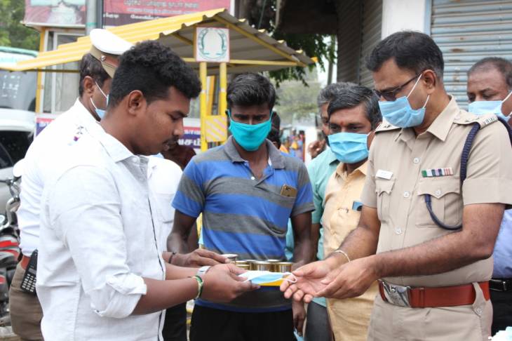 மேலும் பொதுமக்களுக்கு கரோனா வைரஸ் பரவலை தடுப்பதற்கான விழிப்புணர்வு ஏற்படுத்தி கபசுரக்குடிநீர் மற்றும் முகக்கவசம் வழங்கினார்.