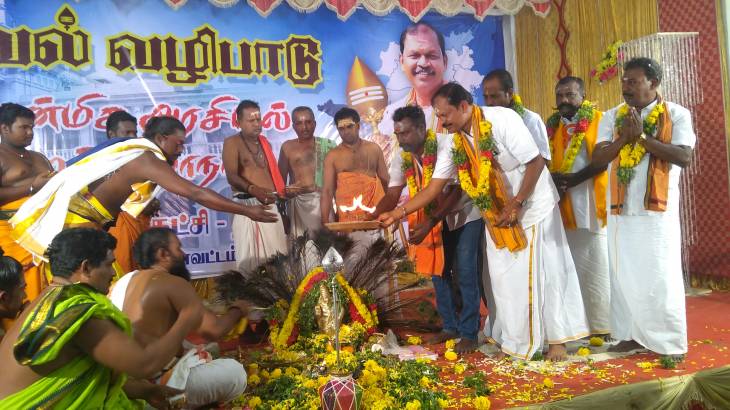 தூத்துக்குடி யில் இந்து மக்கள் கட்சி சார்பில் ஆன்மிக அரசியல் வெற்றிபெற வேல்வழிபாடு மற்றும் யாக பூஜை நடைபெற்றது.