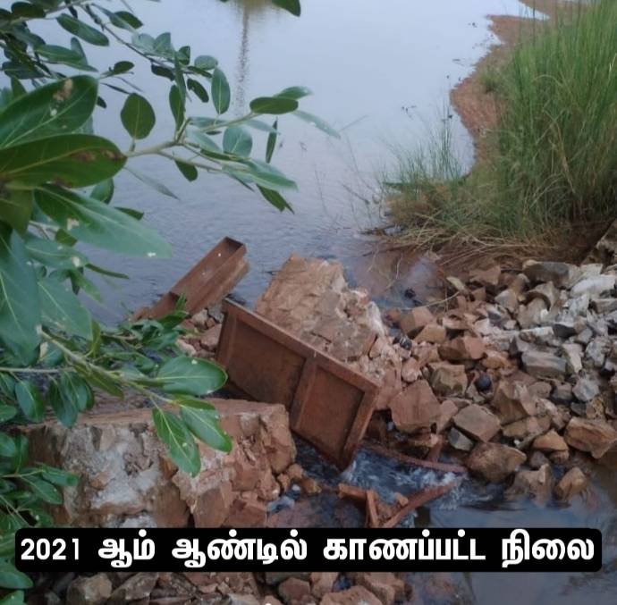 தற்போது நீர் வழித்தட தடுப்பு கதவானது ( ஷட்டர் - Shutter) உடைந்து கீழே விழுந்து பயனற்று கிடக்கிறது. ஆகவே, சம்மந்தப்பட்ட அதிகாரிகள் புதிய தடுப்பு கதவு அமைத்திட உடனடியாக நடவடிக்கை மேற்கொள்ள வேண்டும். இனியும் கால தாமதம் ஏற்படுமானால் புதுக்கோட்டையில் உள்ள தூத்துக்குடி ஊராட்சி ஒன்றிய அலுவலகத்தை முற்றுகையிட்டு கிராம பொதுமக்கள் சார்பாக போராட்டம் நடத்தப்படும் என அப்பகுதி மக்கள் தெரிவித்துள்ளனர்.