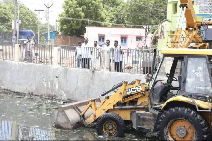 அதே போல், தமிழ்நாடு முதலமைச்சர் மு.க.ஸ்டாலின் உத்தரவின் பேரில், தூத்துக்குடி மாநகரில் எந்த ஒரு பகுதியிலும் மழைநீர் தேங்கி நிற்காத வகையில் பல நடவடிக்கைகள் மேயர் எடுத்து வருகிறார். அதன் ஒரு பகுதியாக தூத்துக்குடி மாநகராட்சிக்கு உட்பட்ட, பி.என்.டி காலனி பகுதியில் நடைபெற்று வரும் மழைநீர் வடிகால் பணிகள் மற்றும் கடந்த ஒருமாத காலமாக நடைபெற்று வரும் தூத்துக்குடி 3-வது மைல் பகுதியில் இருந்து கடற்கரை வரை மொத்தம் 6 கிமீ தூரத்திற்கு பக்கிள் ஓடை தூர்வாரும் பணிகள் நடைபெற்று வரும் நிலையில், மடத்தூர் பகுதிக்கு நேரில் சென்று அப்பணிகளை நேரில் ஆய்வு செய்தார்.
