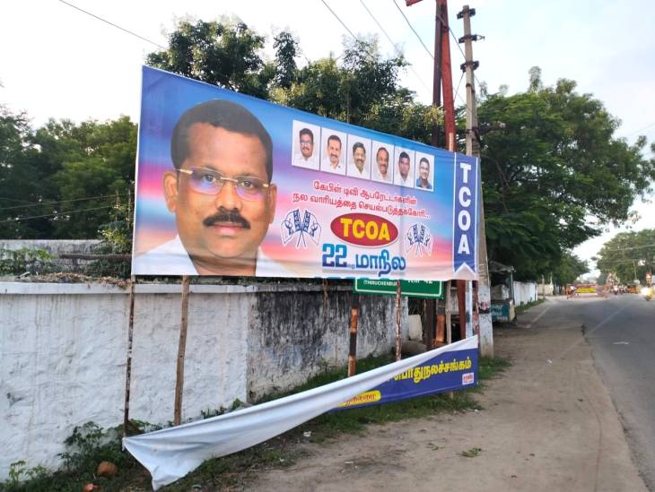 தமிழக கேபிள் டிவி ஆபரேட்டர்கள் பொதுநல சங்க 22 வது மாநில பொது குழு மாநாடு நாளை ( டிச.,4 ) தூத்துக்குடி திருச்செந்தூர் சாலையில் உள்ள ஓர் தனியார் மண்டபத்தில் நடைபெற உள்ளது. இது குறித்து சங்க மாநில தலைவர் வீரமுத்து, பொதுச் செயலாளர் வெள்ளைச்சாமி ஆகியோர் நேற்று ( 2.12.23 ) தூத்துக்குடியில் செய்தியாளர்கள் சந்திப்பை நடத்தி, மாநாடு தொடர்பான விஷயங்கள் குறித்து பேசினர். மேலும், மாநாடு நடைபெறும் திருச்செந்தூர் சாலை மற்றும் மண்டபம் அருகில் மாநாட்டிற்காக, கேபிள் டிவி ஆபரேட்டர்கள் சார்பாக வைக்கப்பட்ட டிஜிட்டல் பேனர்கள் இன்று கிழிக்கப்பட்டுள்ளது.