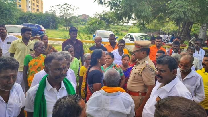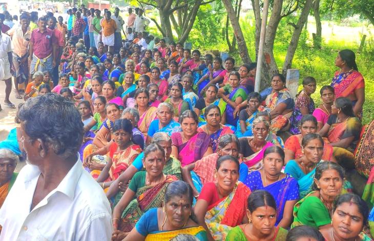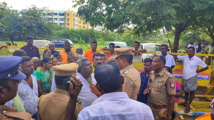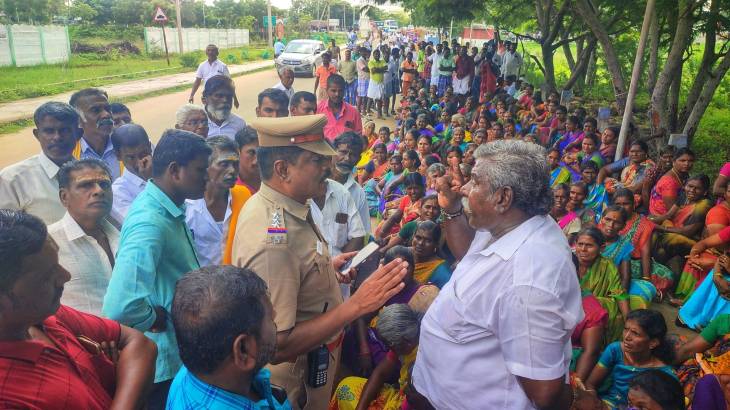 இதனையடுத்து, அங்கு பாதுகாப்பு பணியில் இருந்த சிப்காட் காவல்நிலைய ஆய்வாளர் சண்முகம் தலைமையிலான போலீசார், அவர்களை தடுத்து நிறுத்தி பேச்சுவார்த்தையில் ஈடுபட்டனர். காவல்நிலைய ஆய்வாளர் சண்முகம் நடத்திய பேச்சுவார்த்தையில் உடன் பட்ட கிராமக்கள், கிராமத்தின் முக்கிய நிர்வாகிகள், தலைவர்கள் ஒருசிலர் மட்டும் ஆட்சியரை சந்திக்க அனுமதிக்கப்பட்டு, ஆட்சியரை சந்தித்து மனு அளித்து சென்றனர்.