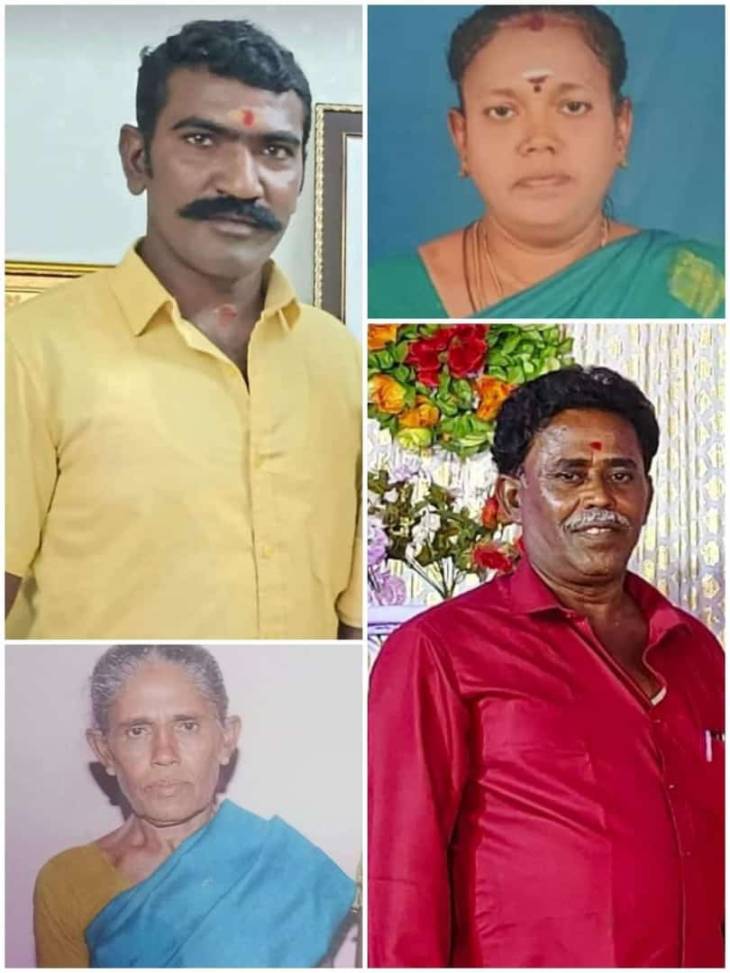 அவர்களுடன் பாக்கியராஜ் ( 62 ) சண்முகத்தாய் ( 53 ), சரஸ்வதி ( 50 ), கணபதி ( 52 ), லதா ( 40 ), ராணி ( 40 ), ஞானம்மாள் ( 60 ) ஆகியோரும் சென்றனர். சின்னபாண்டி ( 40 ) காரை ஓட்டினார்.