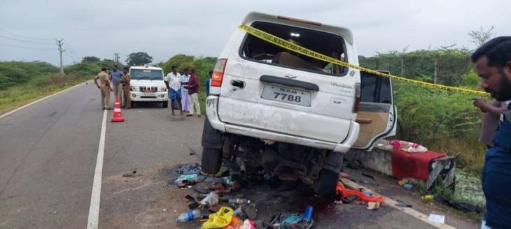 இந்தநிலையில், நேற்று அதிகாலை தஞ்சாவூர் மாவட்டம், மனோரா பகுதியில், டிரைவர் கட்டுப்பாட்டை இழந்த கார் சாலையோர பாலத்தின் தடுப்பு சுவரில் மோதி விபத்துக்குள்ளானது. இந்த விபத்தில் ராணி, ஞானம்மாள், பாக்கியராஜ் மற்றும் டிரைவர் சின்னப்பாண்டி ஆகியோர் சம்பவ இடத்திலேயே பலியாயினர். காரில் பயணம் செய்த மீதமுள்ள 7 பேர் படுகாயம் அடைந்தனர்.