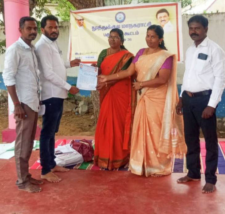 கோரிக்கை மனுவைப் பெற்றுக் கொண்ட அலுவலர் தீர்மானத்தில் ஏற்றுவதாக கூறினார். இதில் 36 வது வார்டு கவுன்சிலர் விஜயலட்சுமி, அரசு அலுவலர்கள் மற்றும் பொதுமக்கள் கலந்து கொண்டனர்.