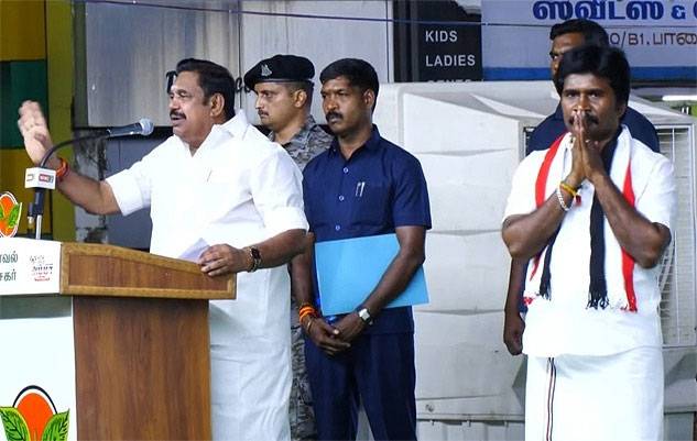 அதேபோல, தூத்துக்குடி மக்களவைத் தொகுதி அதிமுக வேட்பாளர் சிவசாமி வேலுமணியை ஆதரித்து அக்கட்சியின் பொதுச் செயலாளரும், முன்னாள் முதல்வருமான எடப்பாடி பழனிசாமி மாலை தூத்துக்குடி விவிடி சிக்னல் அருகில் தேர்தல் பிரசாரம் மேற்கொண்டார். பின்னர் நெல்லை தொகுதிக்கு பிரச்சாரம் மேற்கொள்ளவதற்காக எடப்பாடி பழனிசாமி நெல்லை சென்றார்.