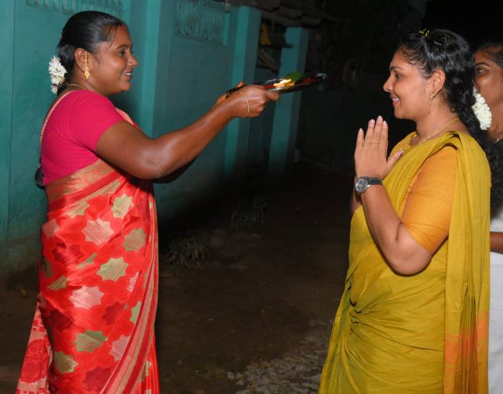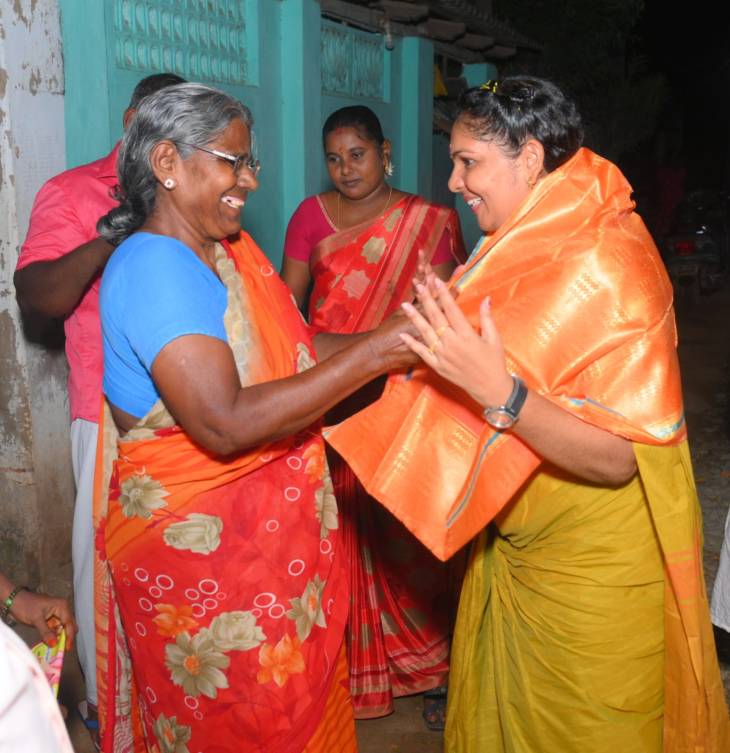 அப்போது அவருக்கு பொதுமக்கள் மாலை மற்றும் பொண்ணாடை அணிவித்து, ஆரத்தி எடுத்து உற்சாக வரவேற்ப்பு அளித்து, அருணாதேவி ரமேஷ் பாண்டியனுக்கு வாக்களித்து வெற்றிபெற செய்வதாக தெரிவித்தனர்.