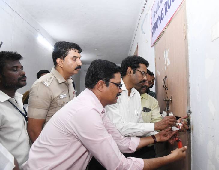 மேற்படி வாக்குப் பதிவு இயந்திரங்கள் அனைத்தும் சம்மந்தப்பட்ட மண்டல அலுவலர்கள் மூலமாக காவல்துறை பாதுகாப்புடன் தூத்துக்குடி வ.உ.சி அரசு பொறியியல் கல்லூரியில் அமைந்துள்ள வாக்கு எண்ணும் மையத்திற்கு கொண்டுவரப்பட்டு உரிய பரிசோதனைகளுக்குப் பின்னர் தேர்தல் பொதுப்பார்வையாளர், வேட்பாளர் மற்றும் முகவர்களின் முன்னிலையில் சட்டமன்ற தொகுதி வாரியாக காப்பு அறைகளில் (Strong Rooms) பாதுகாப்புடன் வைக்கப்பட்டு சீலிடப்பட்டது. மேற்படி வாக்குப் பதிவு இயந்திரங்கள் வைக்கப்பட்டுள்ள வாக்கு எண்ணும் மையத்திற்கு மத்திய பாதுகாப்புப் படை மற்றும் காவல்துறை மூலமாக மூன்றடுக்குப் பாதுகாப்பு போடப்பட்டுள்ளது.