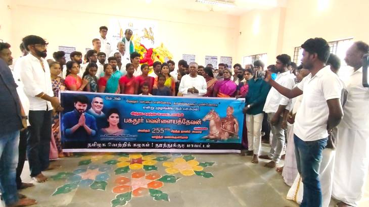 இந்திய சுதந்திர போராட்ட வீரர் வெள்ளையத்தேவனின் 255 ஆவது பிறந்த நாள் விழாவினை முன்னிட்டு தமிழக வெற்றிக் கழகத்தின் சார்பில் அவரது திருஉருவச்சிலைக்கு மாலை அணிவித்து மரியாதை செலுத்தப்பட்டது.