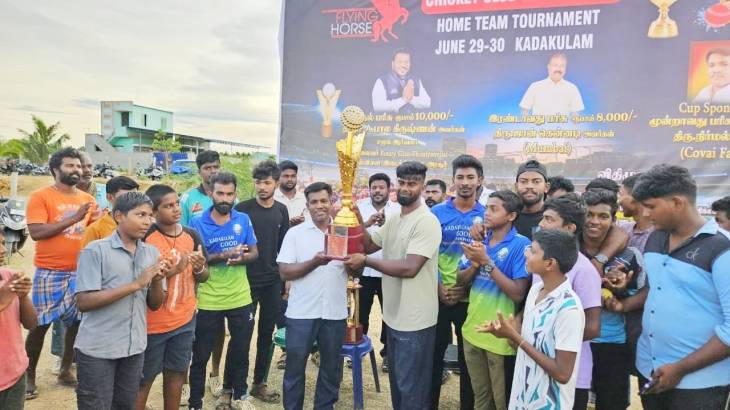 சாத்தான்குளம் அருகே உள்ள கடக்குளம் தி பிளேயிங் ஹார்ஸ் கிரிக்கெட் கிளப் சார்பில் மாவட்ட அளவிலான கிரிக்கெட்போட்டிகள் 2 நாள்கள் நடந்தது.