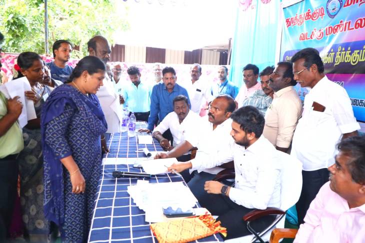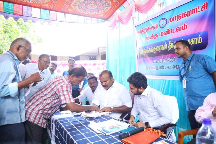 தூத்துக்குடி மாநகராட்சி வடக்கு மண்டல அலுவலகத்தில் நடைபெற்ற மண்டல வாரியான பொதுமக்கள் குறைதீர்க்கும் கூட்டத்தில் மேயர் ஜெகன் பெரியசாமி கலந்து கொண்டு பொதுமக்களிடம் மனுக்களை பெற்றார்.