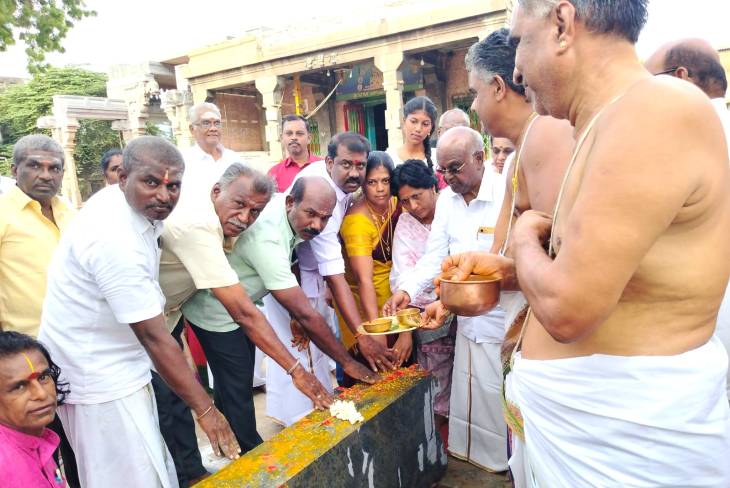தூத்துக்குடி வைகுண்டபதி பெருமாள் கோவிலில் இன்று (செப்.8) கல் நிலைக் கால் வைக்கும் வைபவம் நடைபெற்றது