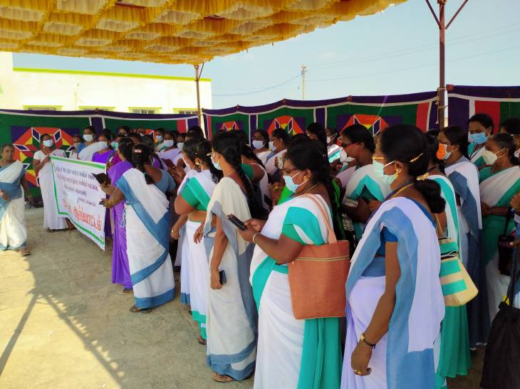 தமிழ்நாடு அரசு கிராம சுகாதார செவிலியர் சங்கம் சார்பாக கண்டன ஆர்ப்பாட்டம் நடைபெற்றது.