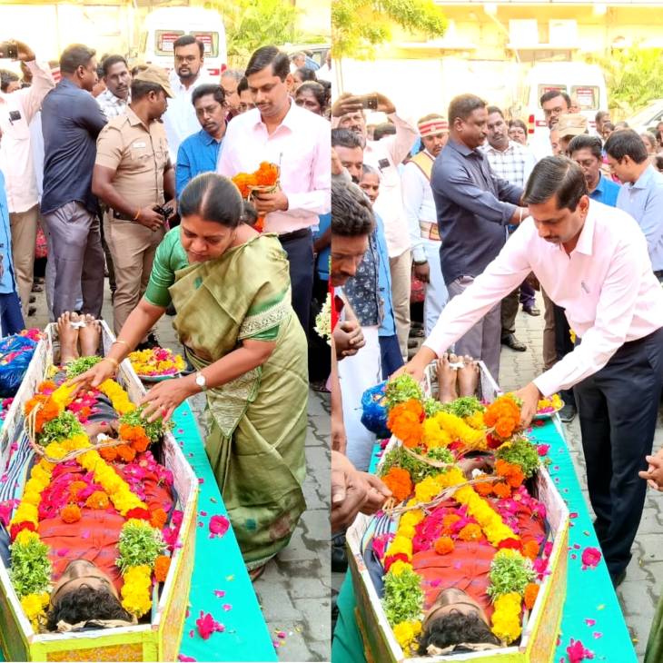 தமிழ்நாடு அரசு சார்பில் உடல் உறுப்பு தானம் செய்த தனசிங்கின் உடலுக்கு, தூத்துக்குடி அரசு மருத்துவமனை வளாகத்தில் சமூக நலன் மற்றும் மகளிர் உரிமைத்துறை அமைச்சர் பி.கீதா ஜீவன், மாவட்ட ஆட்சியர் இளம்பகவத், ஆகியோர் மலர் வளையம் வைத்து அஞ்சலி செலுத்தினர்.
