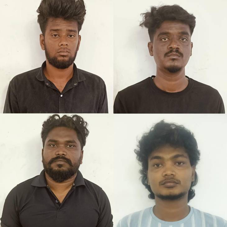 உடனே மேற்படி போலீசார் வசமுத்து, மகேஷ் செல்வம், கோவிந்தராஜ் மற்றும் காந்தி ஆகிய 4 பேரையும் கைது செய்து அவர்களிடமிருந்த ரூபாய் 6 லட்சம் மதிப்புள்ள 450 கிலோ புகையிலை பொருட்கள் மற்றும் 2 கார்களையும் பறிமுதல் செய்தனர்.