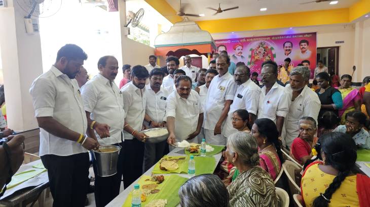 பின்னர், தூத்துக்குடி தெற்கு மாவட்ட அம்மா பேரவை இணைச் செயலாளரும், 39வது வட்ட செயலாளருமான திருச்சிற்றம்பலம் ஏற்பாட்டில் சுமார் 4000 பேருக்கு அன்னதானம் வழங்கும் விழா நடைபெற்றது. இதில் சிறப்பு அழைப்பாளராக தூத்துக்குடி தெற்கு மாவட்ட அதிமுக செயலாளரும், முன்னாள் அமைச்சருமான எஸ்.பி சண்முகநாதன் கலந்துகொண்டு பொதுமக்களுக்கு அன்னதானத்தை துவக்கி வைத்தார்.