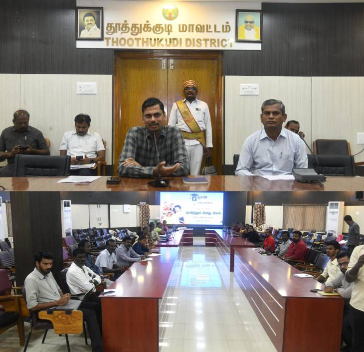 தூத்துக்குடி மாவட்ட ஆட்சியர் அலுவலகக்கூட்டரங்கில் இன்று (20.05.2025), பள்ளிக் கல்வித்துறை சார்பில் 2024-25 ஆம் கல்வியாண்டில் பன்னிரெண்டாம் வகுப்பு தேர்ச்சி பெற்ற மாணவ, மாணவியர்களிடையே உயர்கல்வியை ஊக்குவிக்கும் வகையில் நான் முதல்வன் திட்டத்தின்கீழ் மாணவர்களுக்கு உயர்கல்வி குறித்து உரிய வழிகாட்டுதல்களை வழங்க வேண்டுமென்று என்ற நோக்கில் மாவட்ட ஆட்சியர் அலுவலகத்தில் அமைக்கப்பட்டுள்ள மாவட்ட அளவிலான கட்டுப்பாட்டு அறையின் செயல்பாடுகளை மாவட்ட ஆட்சித்தலைவர் இளம்பகவத் தொடங்கி வைத்தார்.
