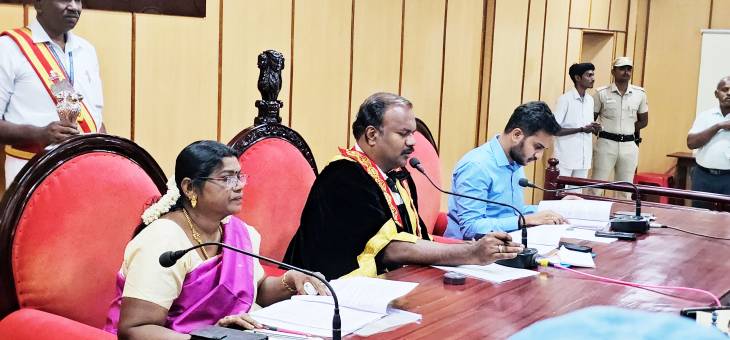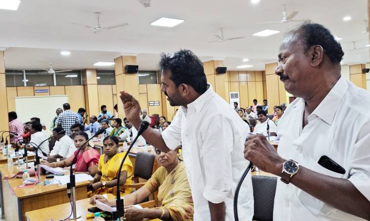 தூத்துக்குடி மாநகராட்சியின் மாமன்ற சாதாரண கூட்டம் மேயர் ஜெகன் பெரியசாமி தலைமையில் நடைபெற்றது. மாநகராட்சி ஆணையர் மதுபாலன், துணை மேயர் ஜெனிட்டா ஆகியோர் முன்னிலை வகித்தனர். இதில், மாமன்ற உறுப்பினர்கள், மாநகராட்சி அதிகாரிகள் உள்ளிட்டோர் கலந்து கொண்டனர்.