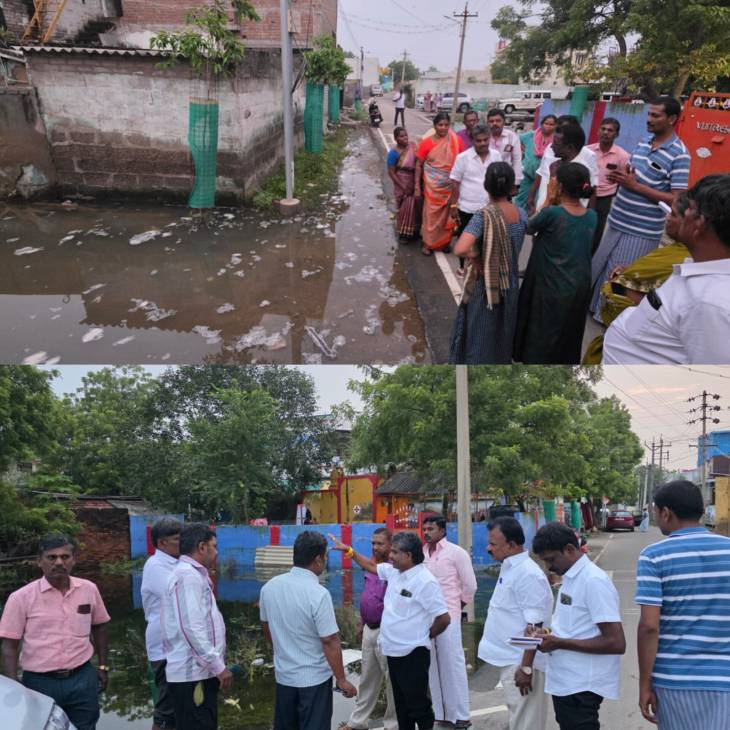 இந்த ஆய்வின் போது மாநகராட்சி உதவி ஆணையாளர் முனீர் அஹமத், உதவி பொறியாளர் ராஜேஷ்கண்ணன், திமுக பகுதி செயலாளர் சிவகுமார், துணை செயலாளர் வேல்முருகன், வட்ட செயலாளர் தெய்வேந்திரன் மாவட்ட பிரதிநிதி பூவேஷ்நாதன், அவைத்தலைவர் ராஜசேகர், பொறியாளர் அணி தர்மர், இளைஞரணி பத்மநாபன், மகளிரணி பௌஷியா உள்ளிட்டோர் உடனிருந்தனர்.