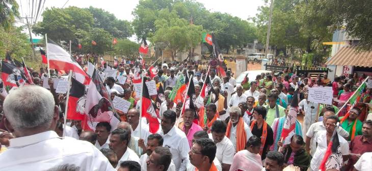 அதிமுக பொதுச்செயலாளரின் ஆணைக்கிணங்க, தூத்துக்குடி வடக்கு மாவட்ட செயலாளரும், முன்னாள் அமைச்சருமான கடம்பூர் ராஜூ, எம்.எல்.ஏ அறிவுறுத்தலின்படி நடைபெற்ற இந்த போராட்டத்தில், ஓட்டப்பிடாரம் முன்னாள் சட்டமன்ற உறுப்பினரும், ஓட்டப்பிடாரம் மேற்கு ஒன்றிய அதிமுக செயலாளருமான மோகன் தலைமை தாங்கினார். ஓட்டப்பிடாரம் கிழக்கு ஒன்றிய செயலாளர் போடுசாமி முன்னிலை வகித்தார்.