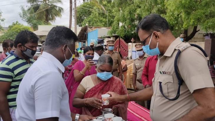 கொரோனா தொற்றிலிருந்து நம்மை பாதுகாத்துக்கொள்ள நோய் எதிர்ப்பு சக்தியை அதிகரிக்க கபசுரகுடிநீர் எடுத்துகொள்ள வேண்டும், மேலும் கொரோனா தடுப்பூசி அனைவரும் போட்டு கொள்வதன் மூலம் நம் உயிரை காப்பாற்றிக் கொள்ளலாம் என்று மாவட்ட காவல் கண்காணிப்பாளர் ஜெயக்குமார் சிறப்புரை யாற்றினார். பின் இந்நிகழ்ச்சியில் கலந்துகொண்டவர்களுக்கு கபசுரகுடிநீர், இலவச முககவசங்களை வழங்கினார்.
