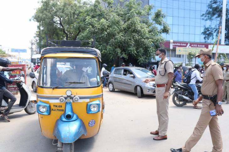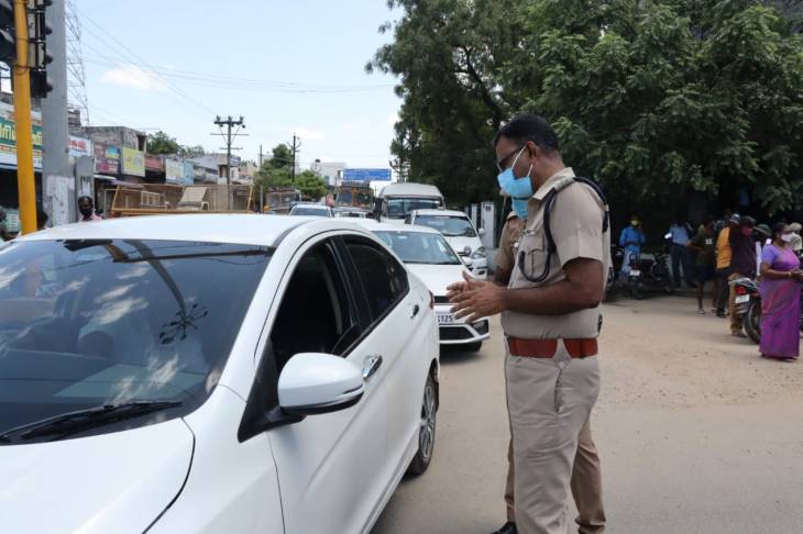 தமிழக அரசு முழு ஊரடங்கு உத்தரவு அமலில் உள்ளதை, சிலர் பொருட்படுத்தாமல் தேவையில்லாமல் சுற்றித்திரிகின்றனர். பொதுமக்களுக்கு தேவையில்லாமல் வீட்டை விட்டு வெளியே வரவேண்டாம் என பல்வேறு வழிகளில் விழிப்புணர்வு ஏற்படுத்தப்பட்டு வருகிறது. இதைக் கட்டுப்படுத்தும் பொருட்டு மாவட்டம் முழுவதும் ஊரடங்கு அமல்படுத்தும் பணியில் 2000 போலீசார் 65 இடங்களில் வாகன சோதiயில் ஈடுபட்டு வருகின்றனர்.