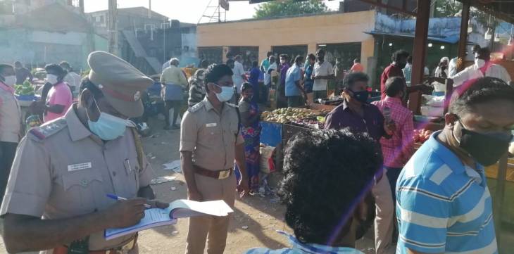 இந்நிலையில், இன்று ( 18.5.2021 ) காலை 6 மணி முதல் மாநகராட்சி ஆணையர் சரண்யா அறி, தூத்துக்குடி காவல் துணை கண்காணிப்பாளர் கணேஷ், மற்றும் காவலர்கள் இன்று காய்கனி மார்க்கெட்டில் திடீர் ஆய்வு மேற்கொண்டனர். மார்க்கெட்டில் சமூக இடை வெளியின்றி பொது மக்கள் அதிகமாக கூடினால் கடும் நடவடிக்கை எடுக்கப்படும் என எச்சரிக்கை விடுத்தனர். மேலும், முக கவசம் அணியாதவர்களுக்கும், சமூக இடைவெளியை பின்பற்றாத வர்களுக்கும் அபராதம் விதிக்கப்பட்டது.