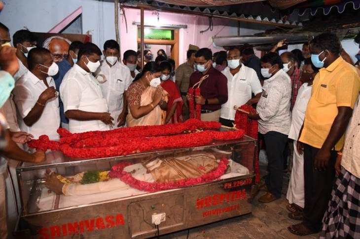 இடைச்சேவல் கிராமத்தில் வைக்கப்பட்டுள்ள மறைந்த எழுத்தாளர் கி.ராஜநாயணன் உடலுக்கு தூத்துக்குடி நாடாளுமன்ற உறுப்பினர் கனிமொழி கருணாநிதி, சமூக நலன் மகளிர் உரிமைத் துறை அமைச்சர் கீதா ஜீவன், தூத்துக்குடி மாவட்ட ஆட்சியர் செந்தில்ராஜ், விளாத்திகுளம் சட்டமன்ற உறுப்பினர், மார்க்கண்டேயன் உள்ளிட்டோர் நேரில் அஞ்சலி செலுத்தினர்.