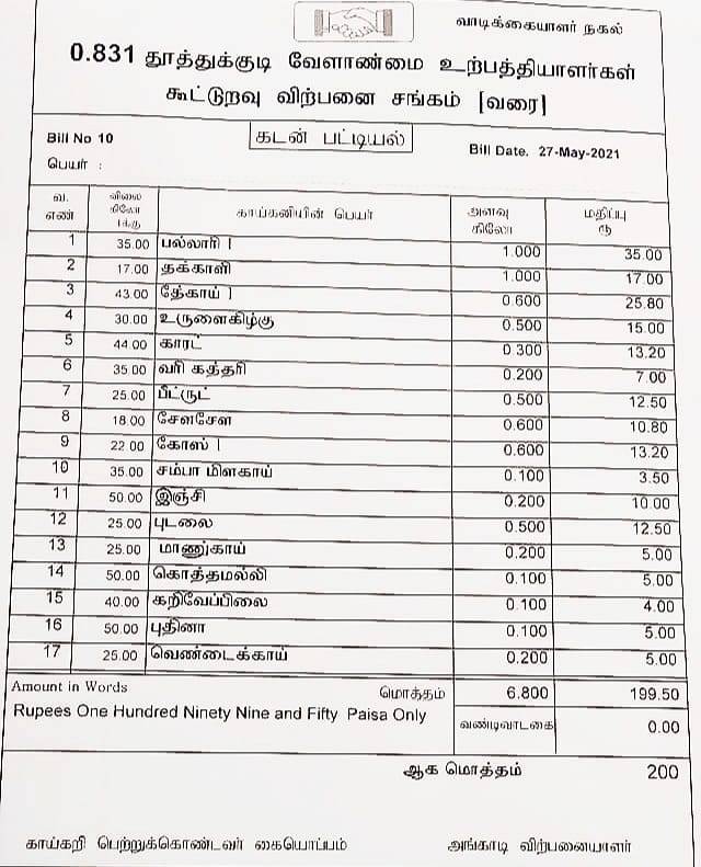 மக்கள் இதனை பயன்படுத்தி காய்கறி மளிகை பொருட்கள் வாங்கி பயன்பெறலாம்.