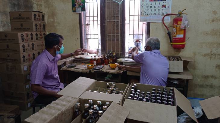 இந்நிலையில், தூத்துக்குடி சோரீஸ்புரம் பகுதியில் 9966 எண் மதுக்கடையில், கடை மேற்பார்வையாளர் சுரேஸ் கண்காணிப்பில், மதுபானம் வாங்க வரும் அனைவருக்கும் சானிடைசர் மூலம் கைகளை சுத்தப்படுத்தப்பட்டு, முகக்கவசம் அணிந்துள்ள வர்களுக்கு மட்டுமே மதுபானம் வாங்க அனுமதிக்கப்பட்டு, கடை விற்பனையாளர்கள் இசக்கி பாண்டி, முத்துப்பாண்டி, பூவலிங்கம் ஆகியோர் மதுவிற்பனை செய்து வருகின்றனர்.